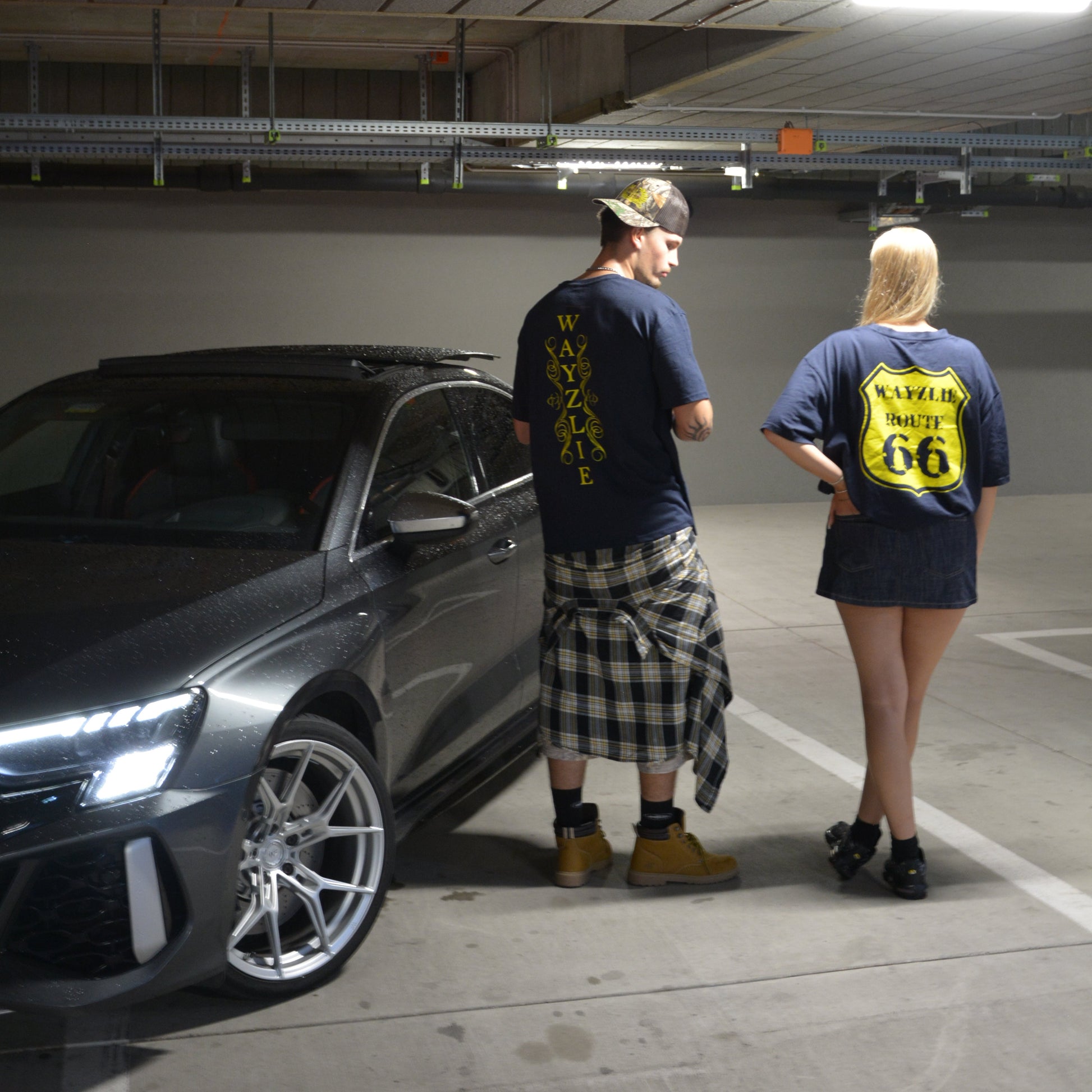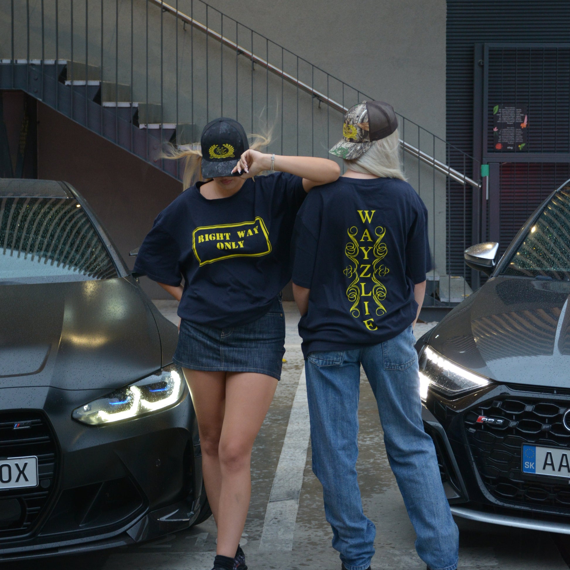 - Front: “RIGHT WAY ONLY” street sign / Back: Route 66 shield with Wayzlie branding
